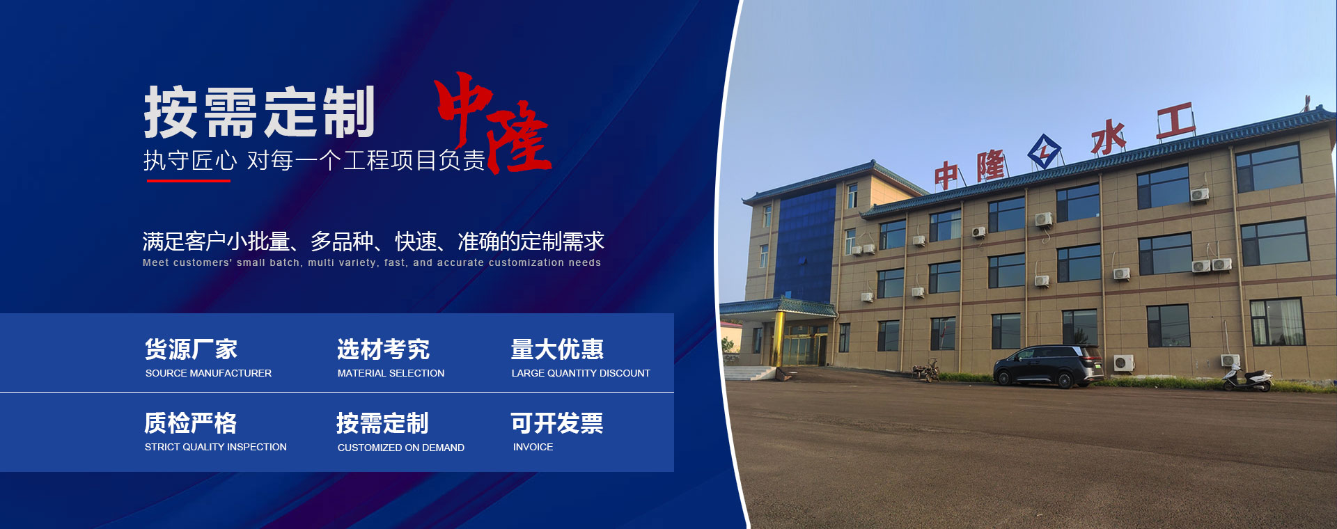 邢臺市中隆水工設備有限公司位于新河縣九龍工業園區占地面積20000平方米。北鄰北環路、西鄰西環路,交通便利。 公司堅持,依法經營,誠信服務的宗旨,尋求合作共創輝煌。融科研制造銷售安裝,服務為一體的水工設備專業制造公司。優質制造設備,規格齊全,產品檢測體系完整,各項技術指標均達到行業標準,給客戶提供無憂合作! 主要產品有:   &n···